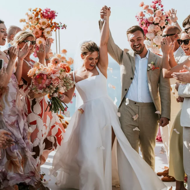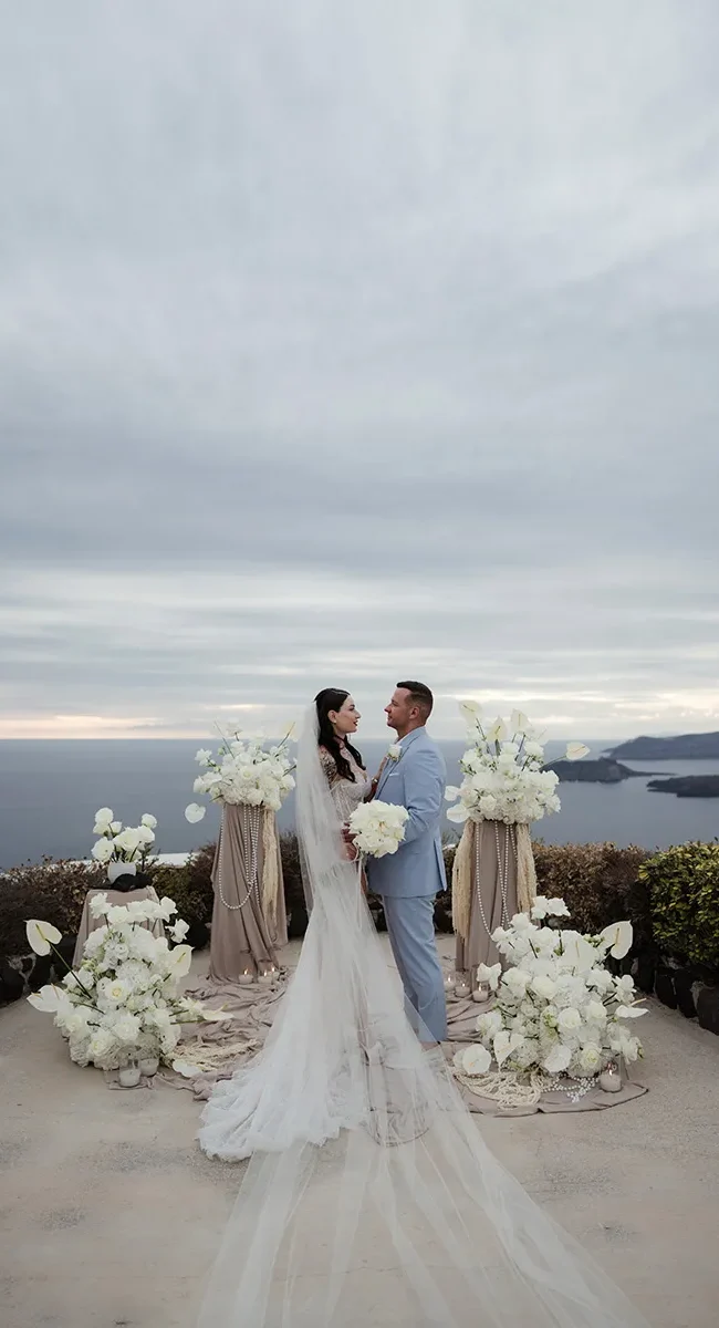 Picture this: golden hour on a cliffside terrace, soft sea breezes, and the sky melting into hues of pink and orange as you say I do. This isn’t just a wedding—it’s a celebration of you, set in Santorini, a place unlike any other. At Weddings Santorini we don’t believe in one-size-fits-all weddings. We listen. We create and we care. From finding hidden gem venues to personal touches that tell your story, we bring your dream day to life with warmth, style, and ease.