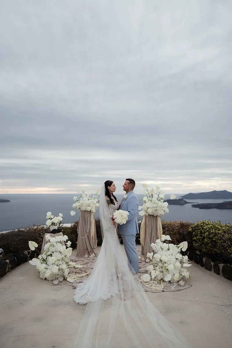Thanks to Weddings Santorini we had our dream wedding! The organisation by Elena beforehand was very uncomplicated and we always had a reliable contact person for our questions and wishes. Of course, we were still a little nervous when we arrived in Santorini, but after our meeting with Kostas on site, our nervousness was gone. Everything was already perfectly planned and all details discussed, everything was perfect! On our wedding day, we didn't have to think about anything ourselves. The agency arranged and organised the entire day so that we could simply enjoy it. Everything was perfect, our dream wedding came true, and we owe it all to Weddings Santorini! THANK YOU for everything!